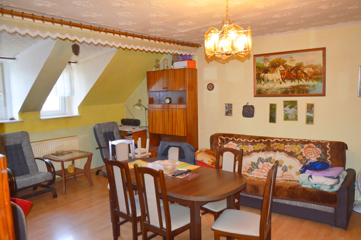 Oferta na wyłączność biura. Do sprzedania 2 pokoje mieszkanie, położone na II piętrze budynku przy ul. B. Chrobrego w Wojcieszowie. Mieszkanie składa się z dwóch pokoi, przedpokoju, kuchni i łazienki z WC o pow. 54,11 m2. Do każdego pomieszczenia jest odrębne wejście z przedpokoju. Wraz z mieszkaniem sprzedawane jest pomieszczenie gospodarcze o pow. 13,51 m2, znajdujące się przy budynku mieszkalnym. Do mieszkania przynależy także małe pomieszczenie piwniczne oraz niewielki ogródek z postawioną na nim zadaszoną altanką. Mieszkanie w obecnym stanie spełnia wszelkie warunki by w nim zamieszkać, jednak wskazane jest przeprowadzenie w nim remontu i podwyższenie standardu. Okna plastikowe, instalacja elektryczna, wodna i kanalizacyjna do modernizacji. Ogrzewanie centralne piecem na węgiel lub drewno, umieszczonym w kuchni. Jest to dwuletni piec, a w każdym pomieszczeniu znajdują się grzejniki. W pokojach, kuchni i przedpokoju na podłodze panele, na ścianach tynk i kasetony. Łazienka z kabiną prysznicową, umywalką, toaletą i miejscem na pralkę. Mieszkanie znajduje się w wyremontowanym i ładnie wyglądającym budynku, który przeszedł termomodernizację, wymianę i docieplenie dachu oraz remont klatki schodowej. Teren przy budynku jest zagospodarowany, ładnie utrzymany, a wjazd na posesję jest z drogi głównej. Przy budynku są miejsca parkingowe dla mieszkańców. W niedalekiej okolicy znajduje się kościół i przystanek autobusowy. Miejsce bardzo spokojne, sąsiedztwo miłe i pomocne. Czynsz do wspólnoty mieszkaniowej to tylko 210 zł. miesięcznie. Z uwagi na konieczność remontu, cena mieszkania nie jest wygórowana, co z pewnością wpłynie na decyzję o zakupie. Zapraszam na prezentację z agentem.