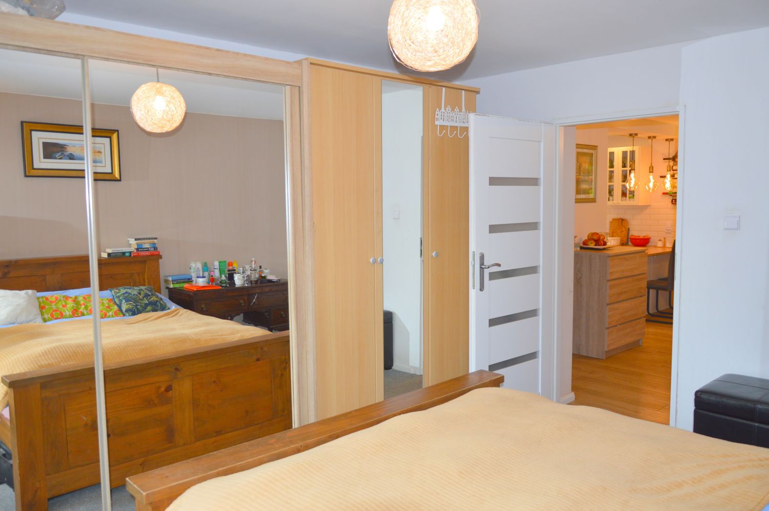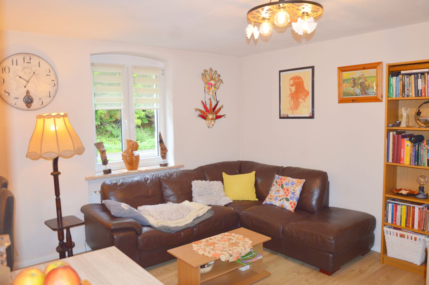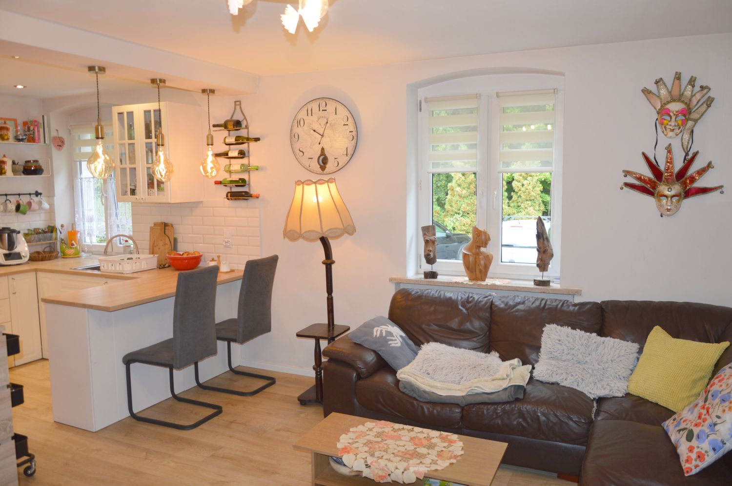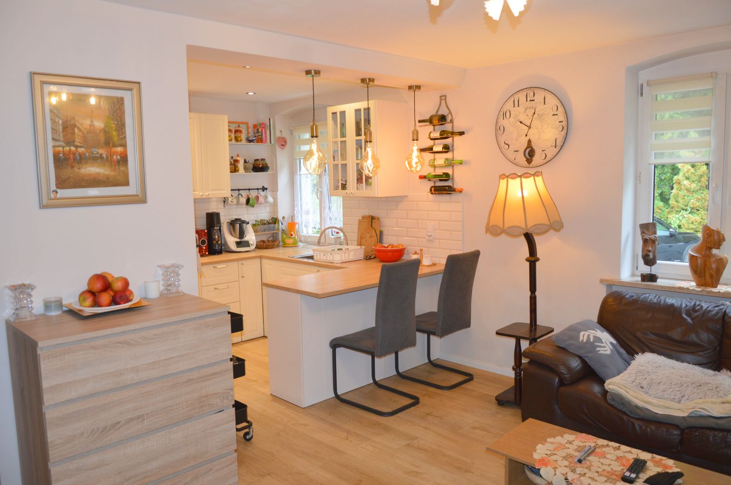 Do sprzedania 3 pokojowe, rozkładowe mieszkanie o pow. 62,50 m2, położone na parterze wielorodzinnego budynku w miejscowości Nowy Kościół, 7 km od Złotoryi. Lokal składa się z pokoju dziennego z aneksem kuchennym, dwóch sypialni, łazienki z WC i przedpokoju. Do mieszkania przynależy także piwnica, komórka na strychu oraz zewnętrzny garaż w podwórzu. Mieszkanie niedawno przeszło kompleksowy remont, w ramach którego wykonano nowe podłogi, wymieniona została cała instalacja elektryczna, wodna i kanalizacyjna, wstawione zostały nowe plastikowe okna i drzwi wejściowe. W sypialniach na podłogach panele, na ścianach i sufitach gładzie szpachlowe. Sypialnie są bardzo jasne, z oknami wychodzącymi na stronę ogródka, ustawne i dobre pod względem aranżacyjnym. W jednej sypialni pozostają szafy ubraniowe i wg potrzeby łóżko. W pokoju dziennym i aneksie kuchennym oraz przedpokoju na podłodze panele, w części kuchennej na ścianach kafelki i gładzie, sufit obniżony, z zamontowanym punktowym oświetleniem. Kuchnia z pełnym umeblowaniem, dopasowanym do wymiarów i wyposażeniem typu kuchenka, okap, zlewozmywak. Łazienka z kabiną prysznicową, umywalką z szafką i toaletą. Ściany i sufit w kafelkach, w suficie oświetlenie punktowe. Ogrzewanie mieszkanie za pomocą nowoczesnego pieca piątej generacji, z zasobnikiem na Eko pelet, umieszczonego w piwnicy pod mieszkaniem. Instalacja centralnie rozprowadzona po mieszkaniu. Pokój dzienny, część kuchenna, przedpokój oraz łazienka posiada ogrzewanie podłogowe, natomiast w sypialniach umieszczone są grzejniki panelowe. Budynek posiada wyremontowany dach, kominy, rynny i spusty, w przyszłości będzie wyremontowana klatka schodowa i elewacja. Przy budynku znajduje się parking na kilka pojazdów. Przy parkingu znajduje się murowany garaż z o pow. 18m2, który sprzedawany jest razem z mieszkaniem. Do mieszkania przynależy także niewielki ogórek rekreacyjny, na którym można zrelaksować się po dniu pracy. W okolicy budynku znajduje się przystanek autobusowy, niedaleko szkoła podstawowa, biblioteka i świetlica, a także boisko. Dojazd do nieruchomości drogą asfaltową. Czynsz miesięczny do wspólnoty wynosi 675 zł z funduszem remontowym i opłatą za śmieci. Mieszkanie nie wymaga żadnych remontów, jest gotowe do wprowadzenia się. Stan prawny w pełni uregulowany. Zapraszam na prezentację.